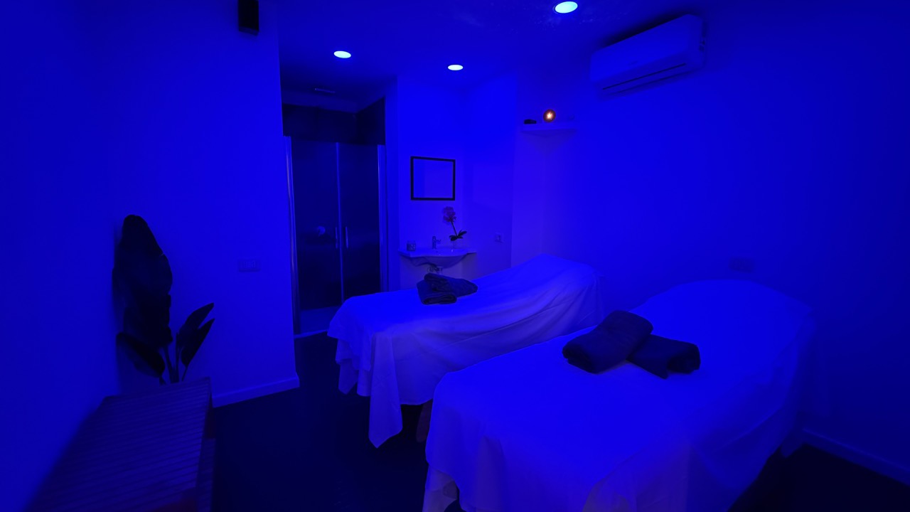 Lettini, area relax con cromoterapia e solarium attrezzato nei periodi di apertura.